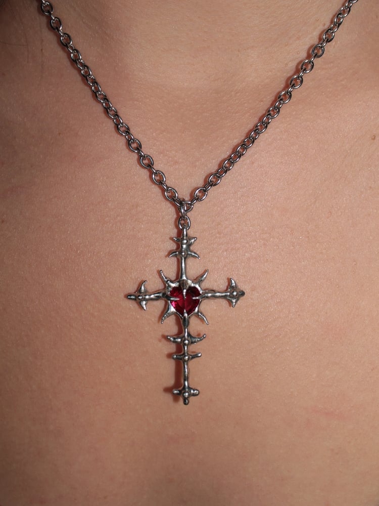 Unique handcarved pewter pendant with a beautiful garnet gemstone in a heart shape. Cast from wax carving.