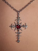 Unique handcarved pewter pendant with a beautiful garnet gemstone in a heart shape. Cast from wax carving.