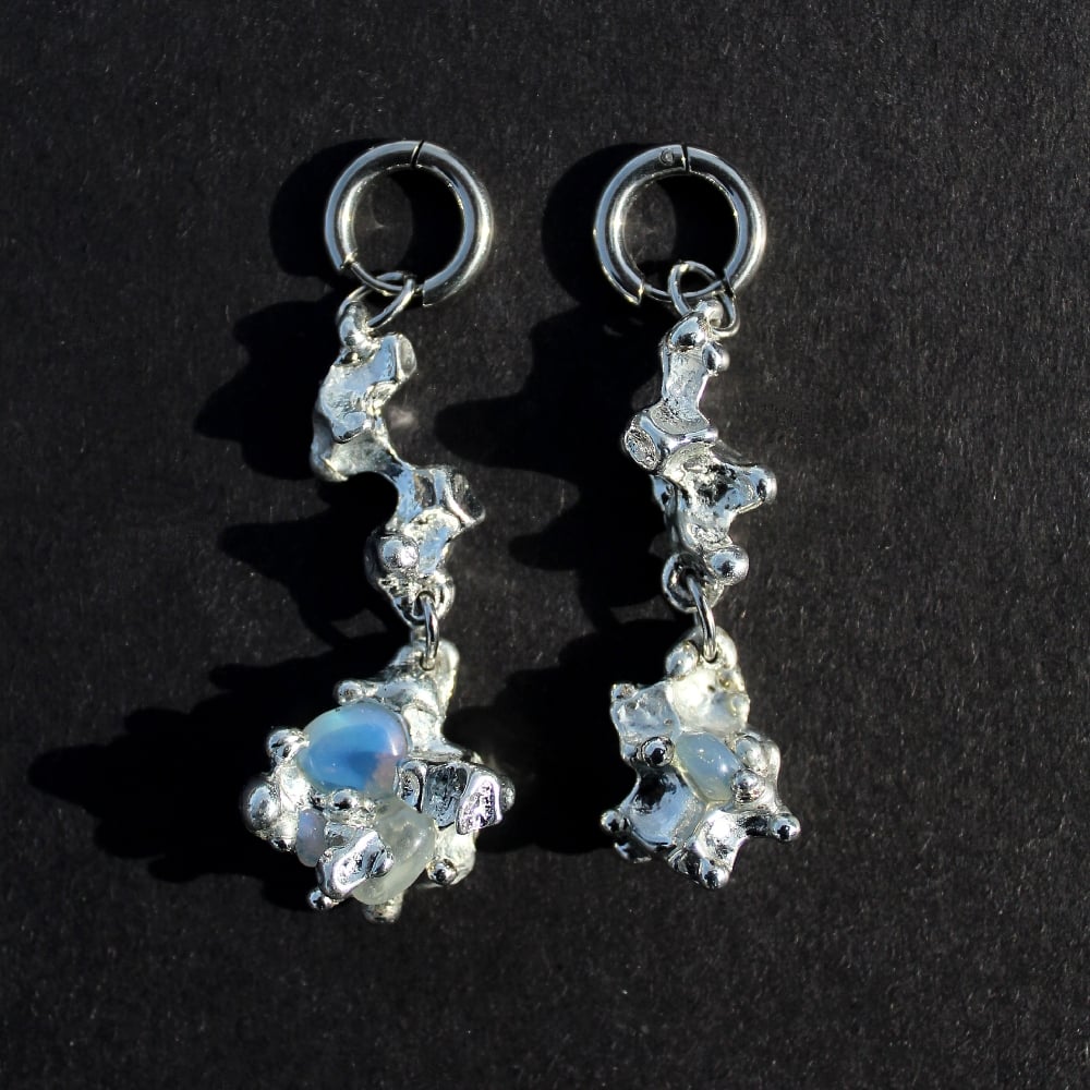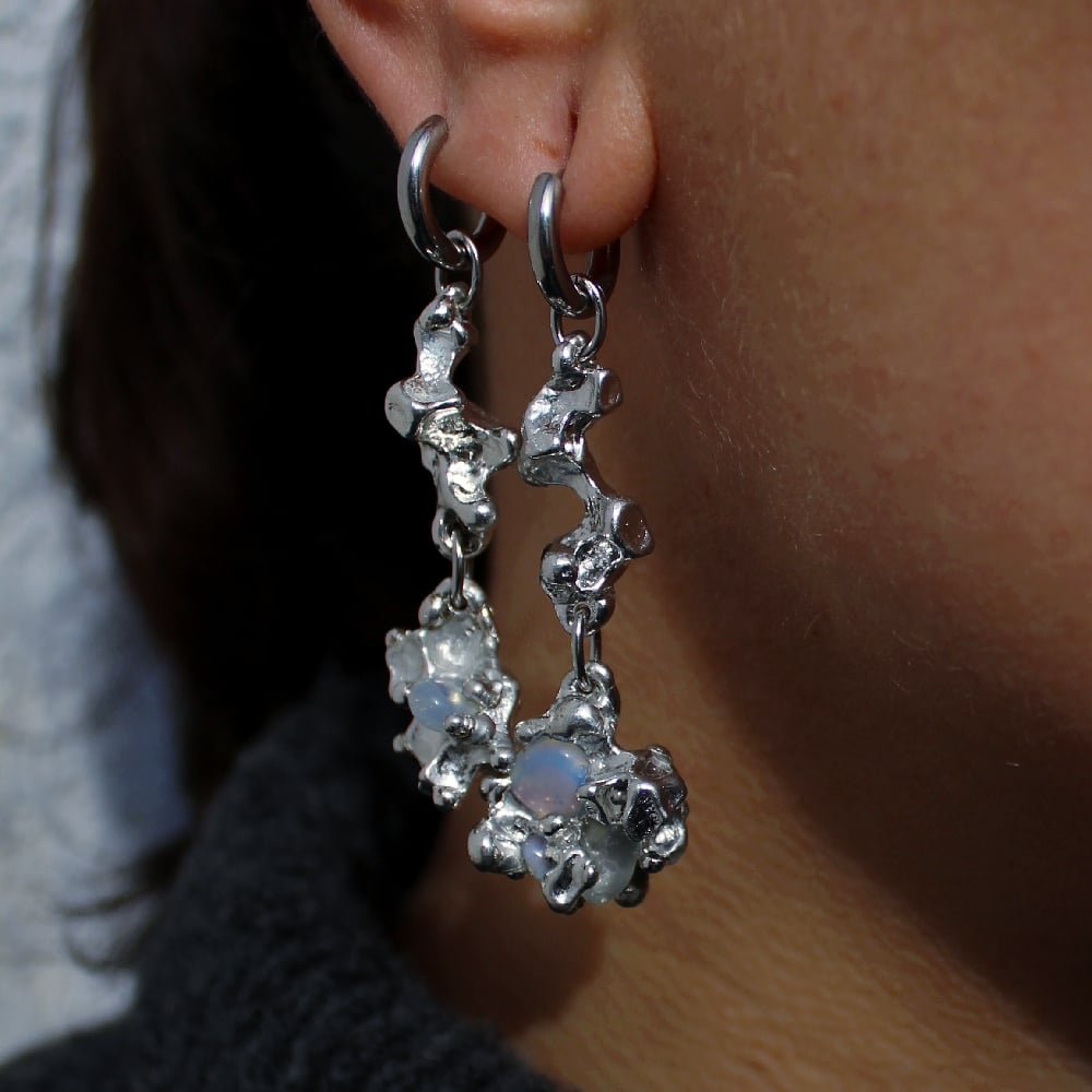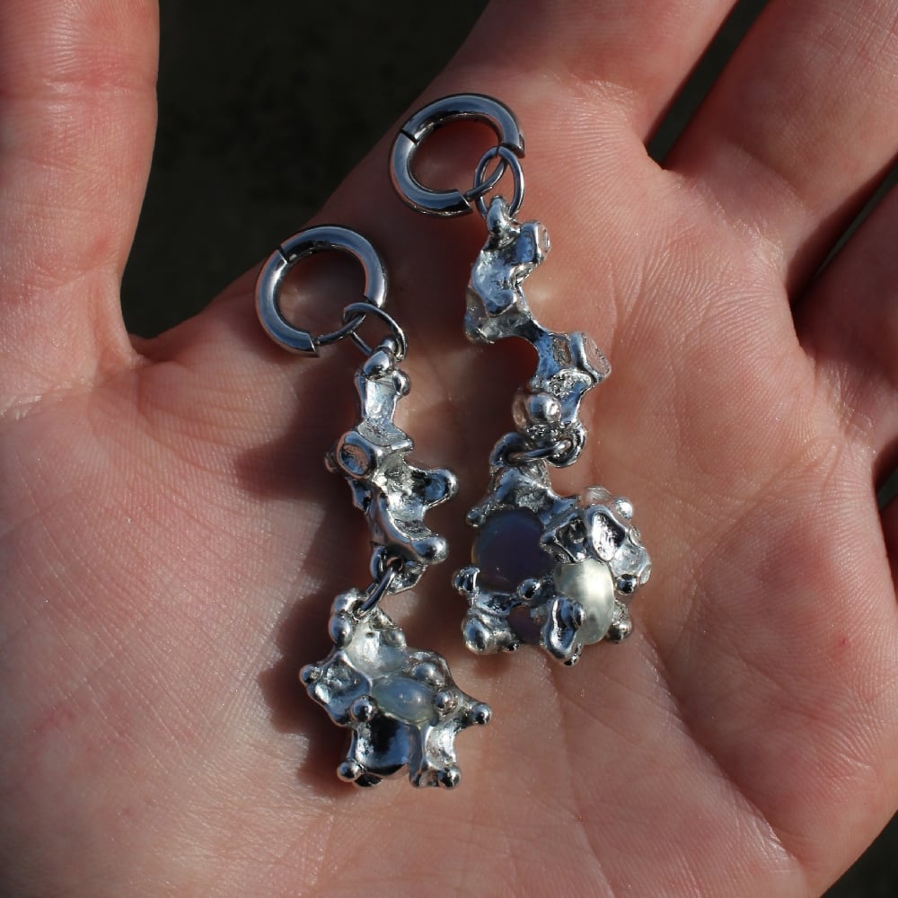 Handmade earrings featuring lead-free pewter in unique, organic shapes. These forms were born from experiments in pursuit of new textures, created in my small workshop. As a result, every component of these earrings is unique and one-of-a-kind. This piece will not be restocked.