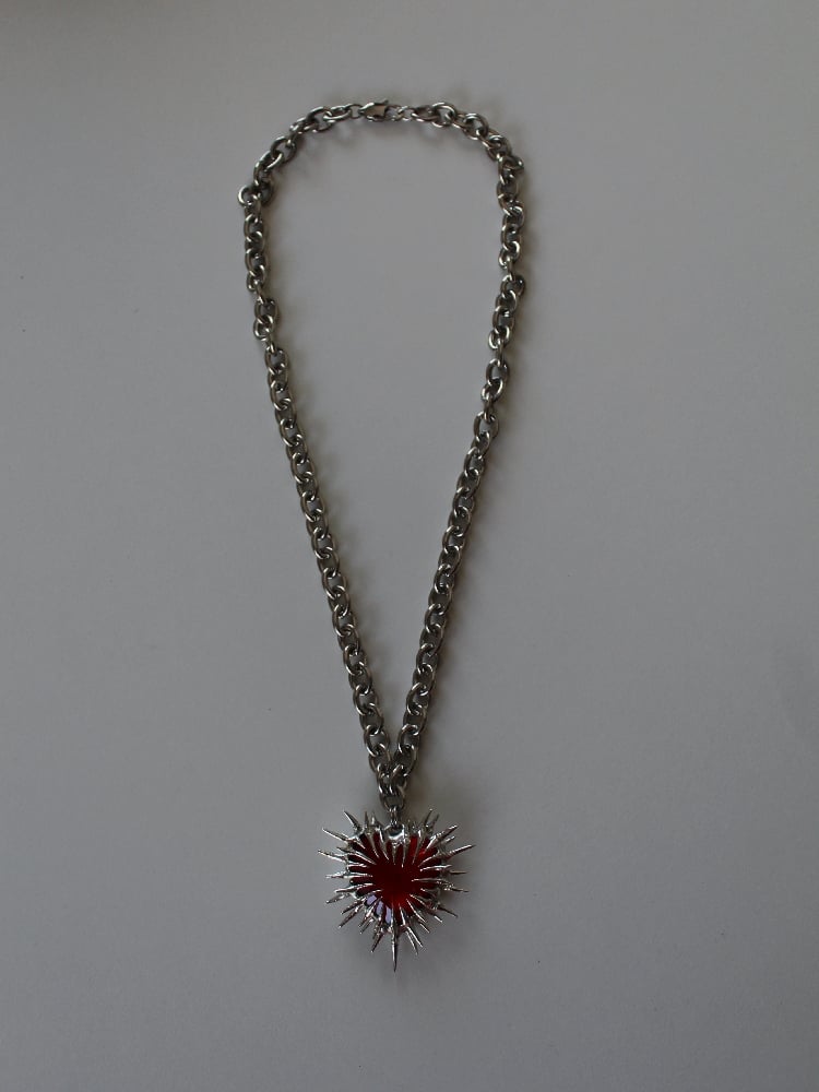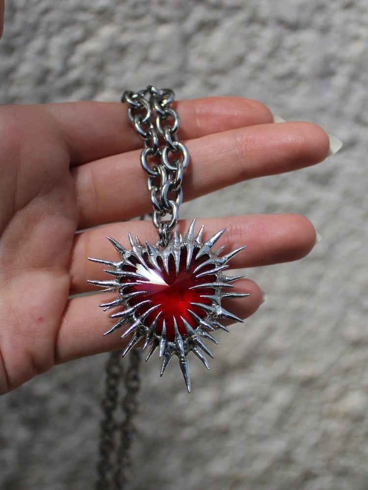 The spikes are soldered to both the front and back of the heart.