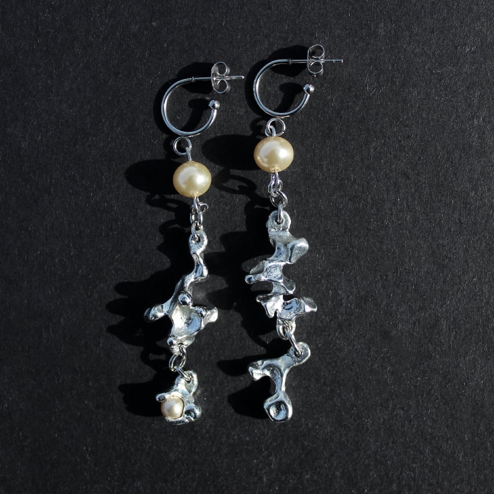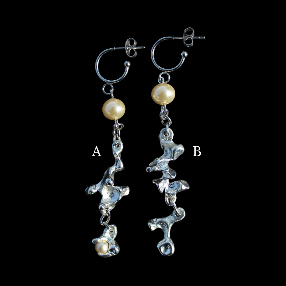 Handmade earrings featuring lead-free pewter in unique, organic shapes. These forms were born from experiments in pursuit of new textures, created in my small workshop. As a result, every component of these earrings is unique and one-of-a-kind. This piece will not be restocked.