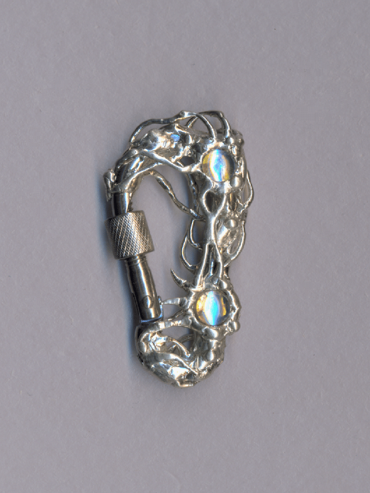 Handcrafted carabiner made using tin alloy, stainless steel & two holographic glass cabochons
