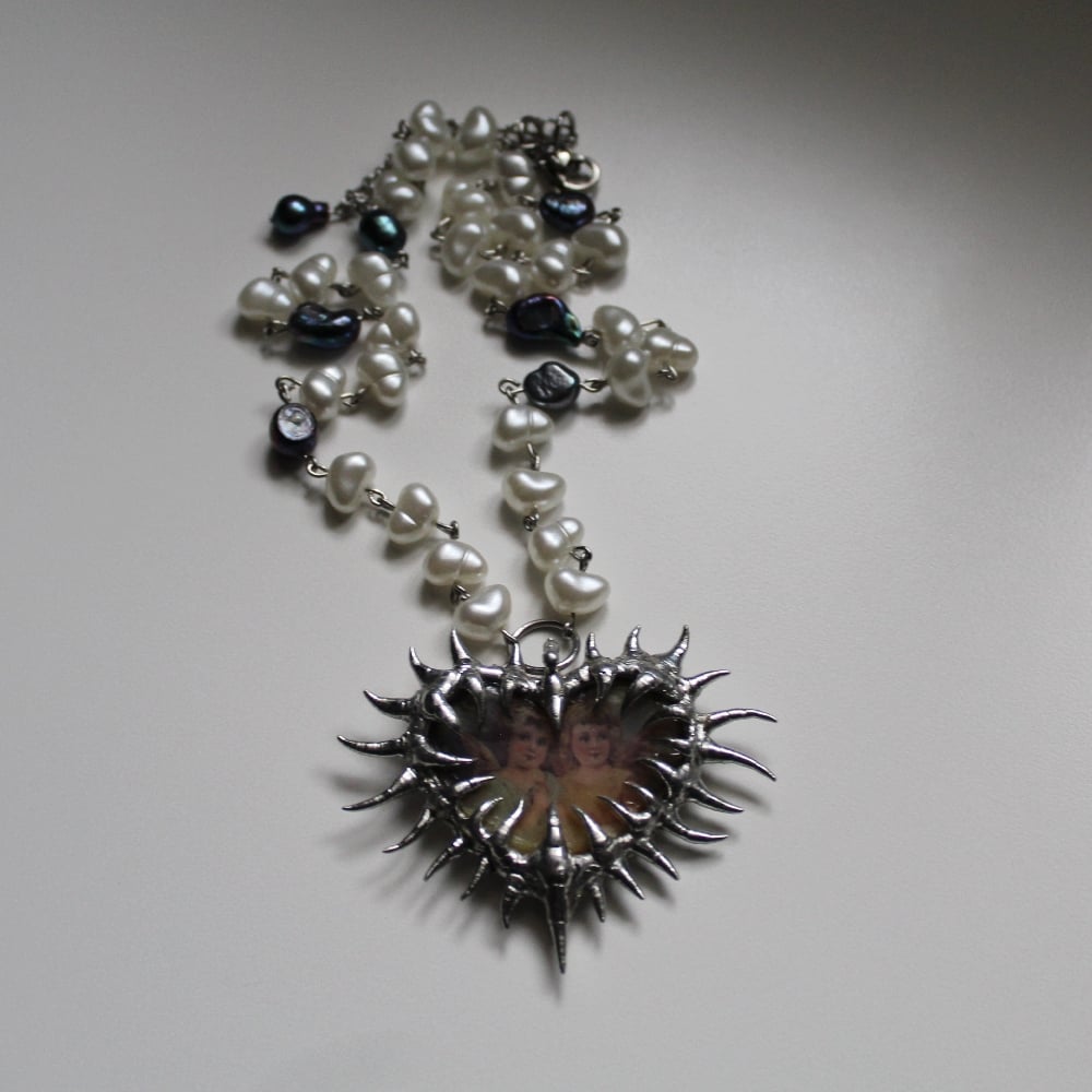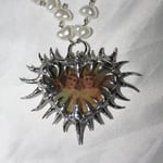 Unique pewter pendant made of a cute angels pic transferred to glass with polymer clay.