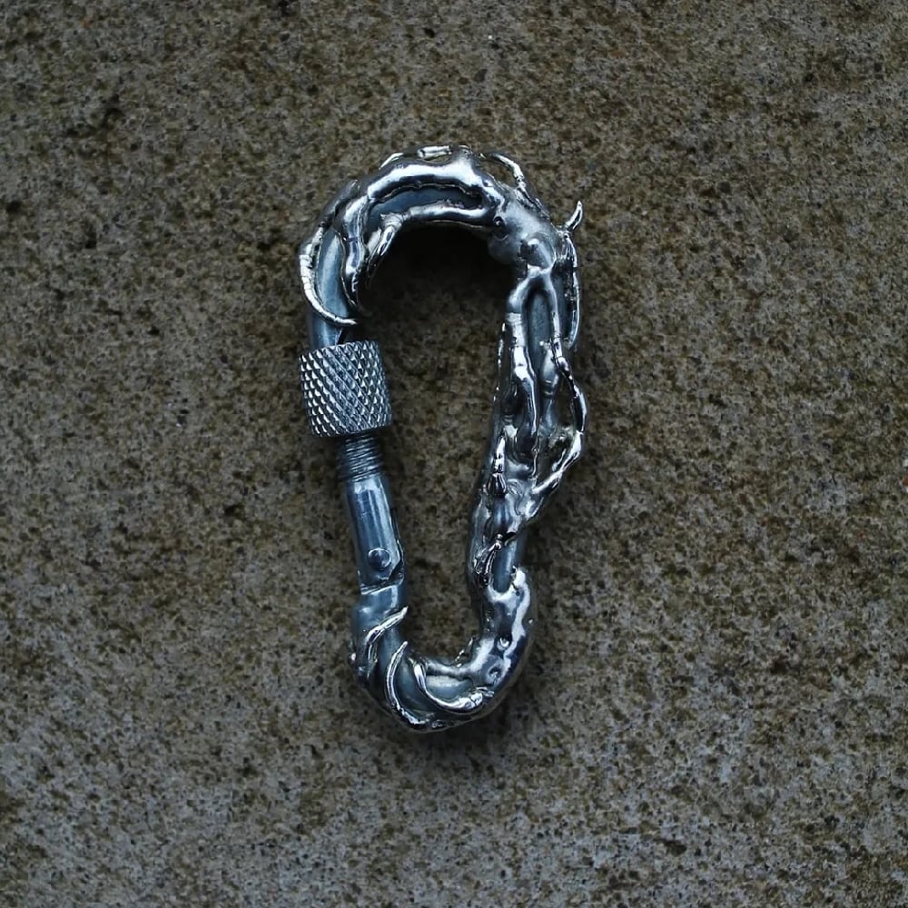 Handcrafted organic-style carabiner made from stainless steel and pewter.
