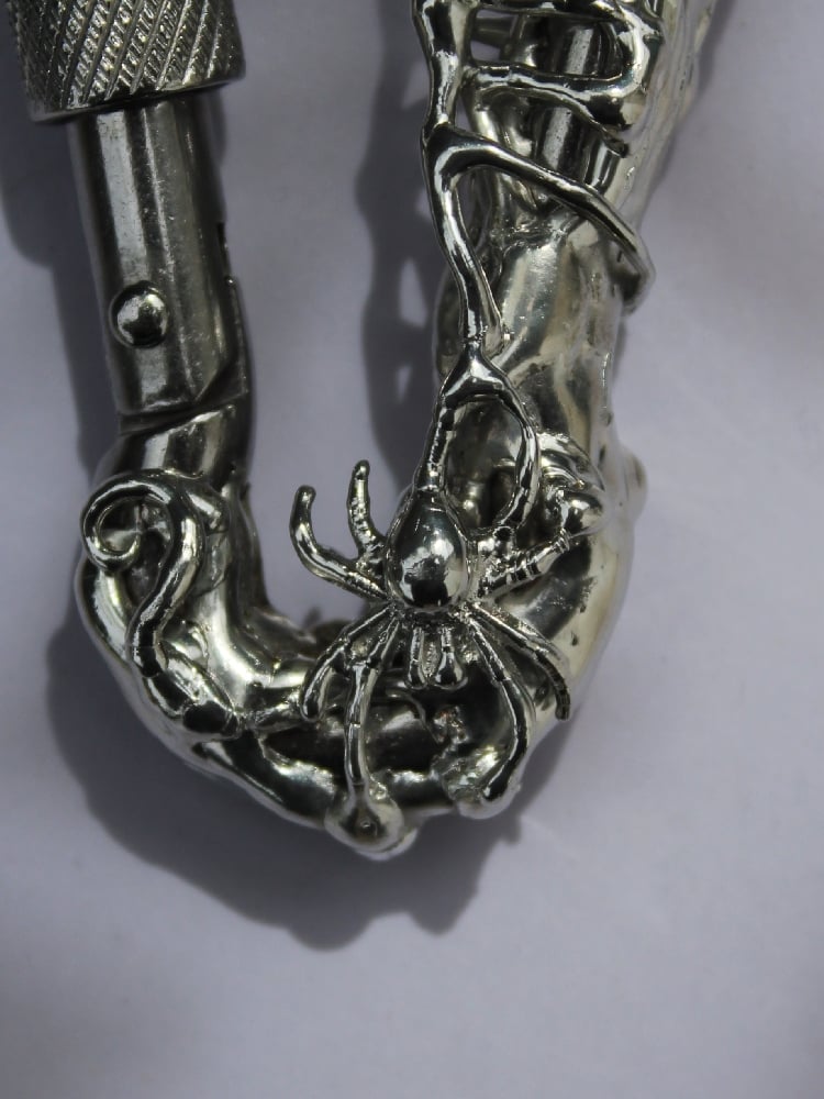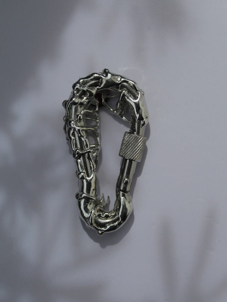 Handcrafted carabiner in stainless steel and lead-free pewter.