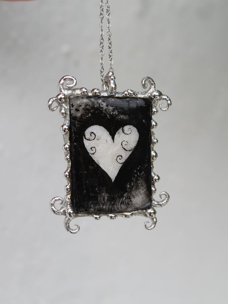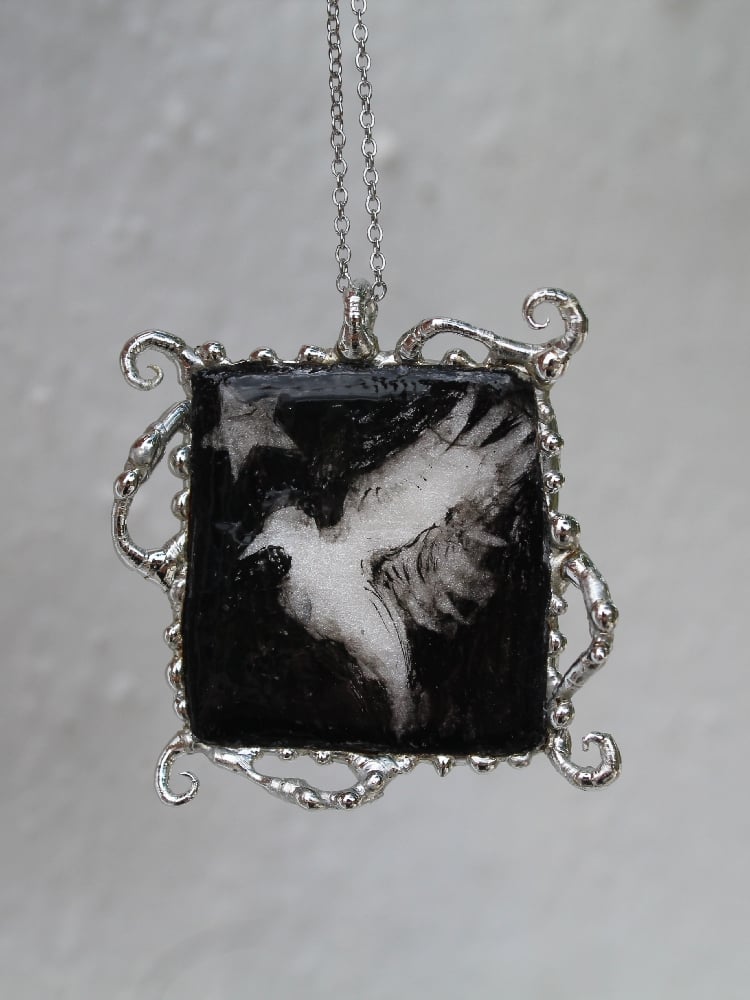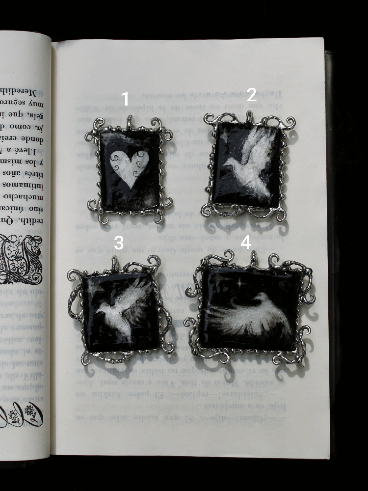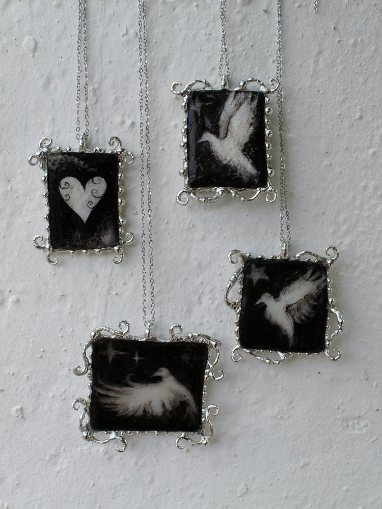 Four unique pendants, each one hand-painted with gouache on a smoothly sanded polymer clay base.